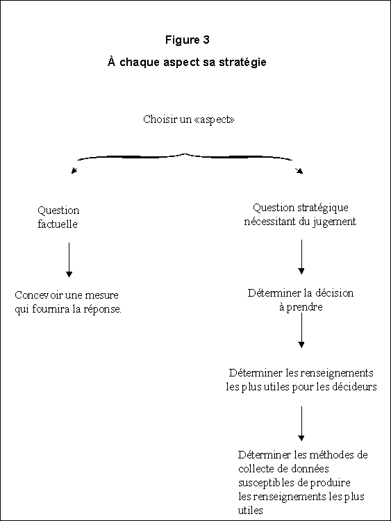 L'étude préparatoire à l'évaluation dégage les principaux points et les principales questions sur lesquels l'évaluation doit porter, en déterminant les méthodes les mieux adaptées à la collecte des données recherchées. L'information est ensuite présentée au client sous forme d'options d'évaluation, pour qu'il choisisse l'approche qui lui convient. L'étude d'évaluation elle-même ne peut commencer qu'une fois son mandat établi. Les données sont alors recueillies et analysées de façon qu'on puisse en dégager des constatations sur les points à évaluer (voir les sous-études 1, 2 et 3 à la figure 1). On se base alors sur les constatations et sur les recommandations pour prendre des décisions sur l'avenir du programme. La discussion des constatations permet d'aider à assurer qu'on rende compte des résultats.
