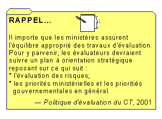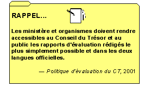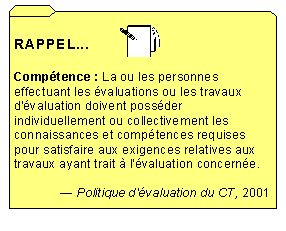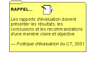 Secrétariat du Conseil du Trésor du Canada, Politique d'évaluation et normes , 2001.