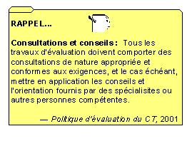 - L' Annexe C contient de l'information sur l'obtention des conseils et du soutien externes pour les évaluations.