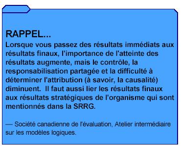 Lien vers le manuel intitulé Measuring Program Outcomes: A Practical Approach , qui est une bonne source d'information sur l'élaboration de modèles logiques et d'indicateurs de rendement.
