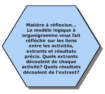 Lien vers le document Logic Models: A Tool for Telling Your Program's Performance Story , qui décrit en détail le procédé des modèles logiques et la manière de se servir de ces modèles pour élaborer et présenter le rendement d'un programme.
