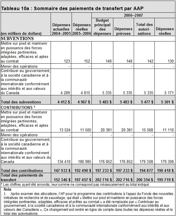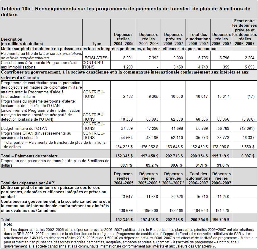 Des renseignements supplémentaires sur les programmes de paiements de transfert, dont il est question dans le tableau 10b ci‑dessus, se trouvent à l’adresse http://www.tbs-sct.gc.ca/rma/dpr3/06-07/index_f.asp