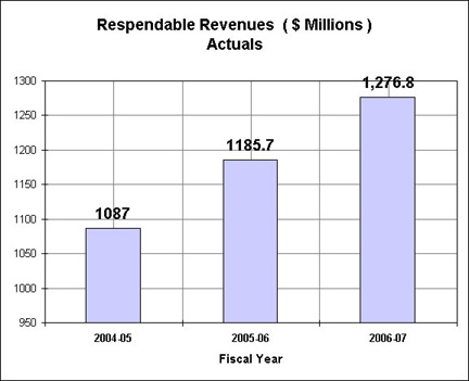 17.2 million”Refunds of amounts to revenues in previous years” shown in the 2006-2007 Public Accounts are not included.