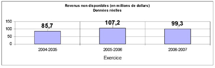 Nota : Les chiffres étant arrondis, leur somme peut ne pas correspondre aux totaux indiqués. Sont exclus 17,2 millions de dollars en « remboursements de montants portés aux recettes d’exercices antérieurs » inscrits dans les Comptes publics de 2006-2007.