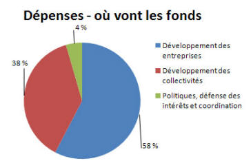 Développement des entreprises, alors que 113 millions de dollars ou 38 % des dépenses totales ont été attribués à l’activité Développement des collectivités.