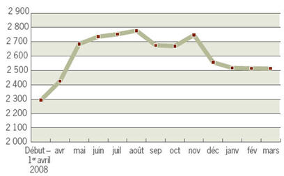 Tendance – Bilan en fin de mois de l’inventaire de toutes les plaintes actives, 2008-2009