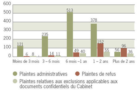 L’an dernier, le Commissariat a résolu la moitié des plaintes figurant dans l’arriéré chronique de plaintes de longue date, datant d’avant le 1er avril 2008. C’est une réalisation importante, puisque le Commissariat s’est engagé à éliminer cet arriéré d’ici le 31 mars 2010. À mesure qu’il résoudra les plaintes de longue date restantes, le temps de traitement moyen (qui était de 13 mois en 2008-2009) devrait diminuer sensiblement.