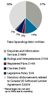 The CRA was provided with $12.3 million in action plan funding, related to the Home Renovation Tax Credit, Home Buyers Tax Credit, late filing and incorrect format penalties and simplification of GST/HST for the direct selling industry. This amount represents only 0.25% of the CRA’s 2009-2010 authorities.