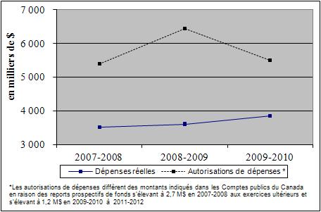 ** Les montants indiqués sous la rubrique « Dépenses réelles » diffèrent légèrement des « Autorisations employées au cours de l’exercice » déclarées dans les Comptes publics. Ces montants ont par la suite été revus selon la recommandation du Bureau du vérificateur général.