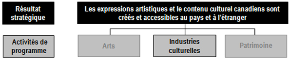 En 2009-2010, les programmes et politiques du Ministère axés sur les arts, les industries culturelles et le patrimoine tels que la Présentation des arts Canada, le Fonds canadien de télévision et le Réseau canadien d'information sur le patrimoine ont continué de contribuer à un environnement qui favorise la création et l'accessibilité des expressions artistiques et du contenu culturel canadiens. Le niveau du résultat stratégique constitue les avantages durables et à long terme pour les Canadiens auxquels le Ministère contribue.