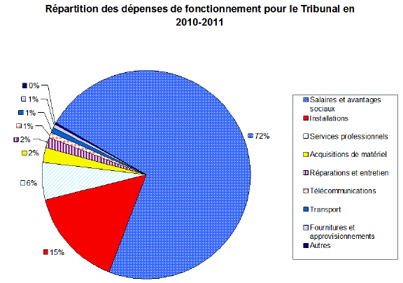 Au cours de l’exercice 2010-2011, les dépenses prévues du Tribunal se chiffraient à 11,9 millions de dollars. Par l’entremise du Budget principal des dépenses et du Budget supplémentaire des dépenses, le Tribunal s’est fait accorder des autorisations totales de 12,211 millions de dollars. De ce montant, 1,79 millions de dollars représentaient les fonds additionnels provenant de la réserve de gestion du Conseil du Trésor. Les dépenses réelles du Tribunal se sont élevées à près de 11 millions de dollars.