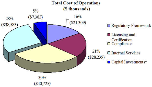* Includes both Internal Services spending and the CNSC’s capital spending ($7.4 million for the modernizing of federal laboratories and for IT investments) applicable to all program activities.