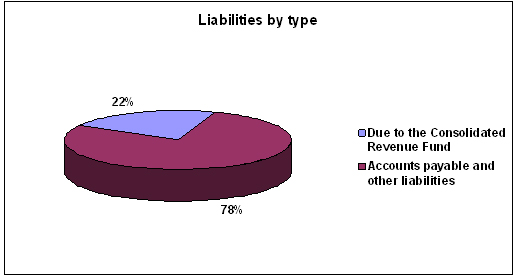 Total liabilities were $94 thousand at the end of fiscal year 2010-11, an increase of $7 thousand from fiscal year 2009-10. The increase was mainly related to higher accounts payable to other federal departments.