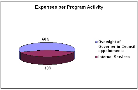 In fiscal year 2010-11, $216 thousand (60%) was spent under the program activity “Oversight of Governor-in-Council appointments” and $143 thousand (40%) was spent under the program activity “Internal Services”.