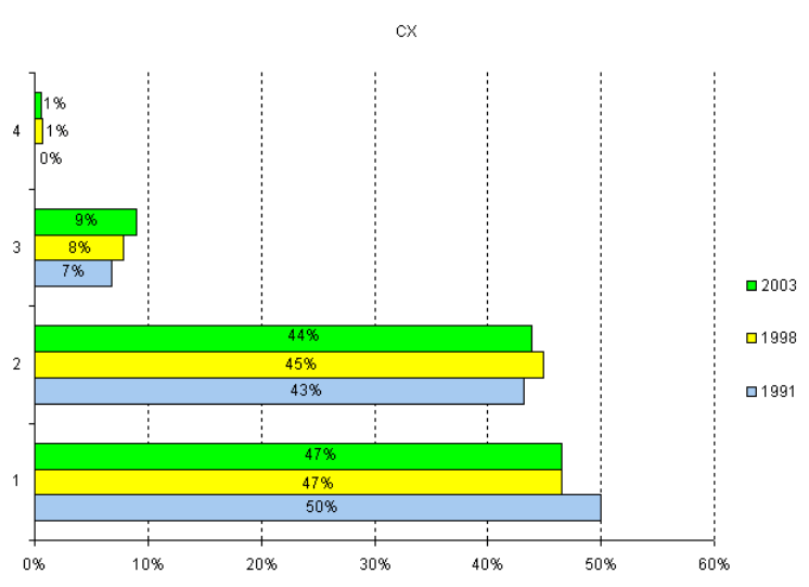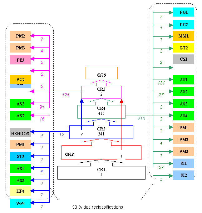 | G | Analyse de la répartition des employés selon leur niveau de classification dans certains groupes de classification, 1991-2003 |