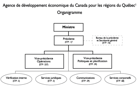 | 1 | Un organigramme plus détaillé est disponible dans le site Internet de l’Agence : http://www.dec-ced.gc.ca/asp/APropos/Organigramme.asp?LANG=FR |