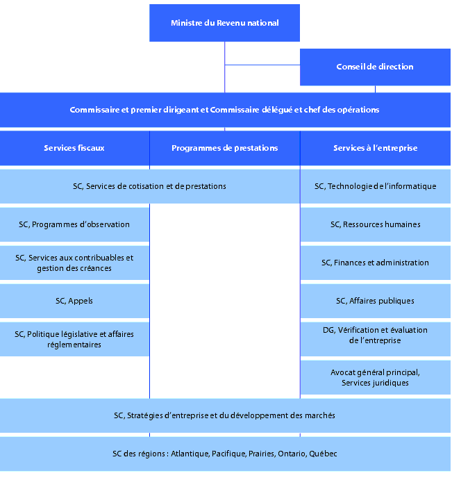 Ce rapport exige également la mise en vigueur complète de notre structure de régie. Cette structure particulière, qui regroupe l’orientation politique et la rigueur organisationnelle, offre d’excellentes occasions aux clients et aux contribuables d’avoir recours à une organisation efficace et moderne pour la gestion des impôts, des prestations et des programmes connexes. Il nous reste à étudier toutes les possibilités offertes par ce modèle de régie unique.