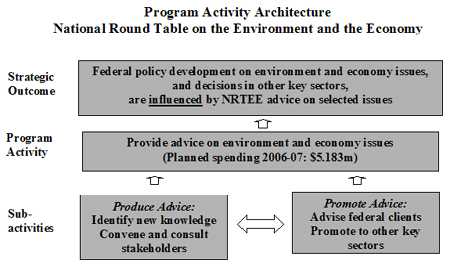 As laid out in our Program Activity Architecture (PAA), the agency will have succeeded when decision makers report that the NRTEE has given them a new way of viewing issues and has raised their awareness and understanding of the issues. In the past, performance indicators have been monitored through ongoing evaluation efforts, including surveys of participants in NRTEE processes, and interviews with senior government and industry representatives. However, different approaches to measuring our performance will be assessed in 2006-2007 (see Section 1.5.2).