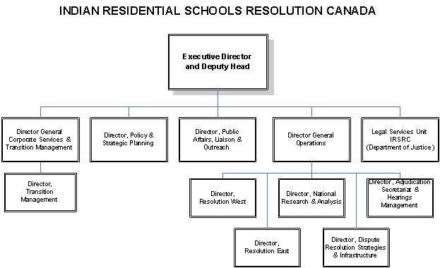 The Director General, Operations, is accountable for: the management of operations relating to the Alternative Dispute Resolution process and ensuring that claims are administered and resolved in accordance with established program authorities; processes and the approved compensation framework; as well as the transition from the Alternative Dispute Resolution process to the Independent Assessment Process under the Settlement Agreement. The Director General is also accountable for: the management of litigation; the health-related components of the National Resolution Framework; and the management and delivery of an extensive research program which supports both litigation and the Alternative Dispute Resolution process;management of all Departmental transition issues related to implementation of the Settlement Agreement and post-resolution including overarching responsibility for delivery of the Advanced Payment program.