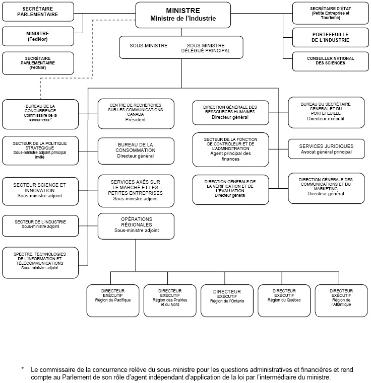 L’organigramme d’Industrie Canada décrit la structure de responsabilisation du Ministère.