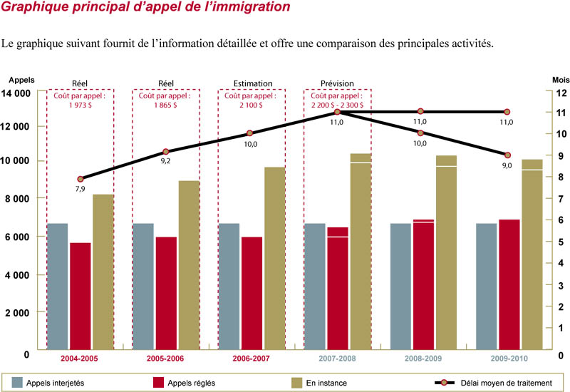 Ce graphique principal d'appel de l'immigration fournit de l'information détaillée et offre une comparaison des principales activités.