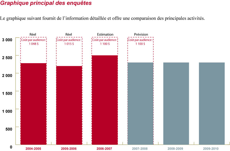 Ce graphique principale des enquêtes fournit de l'information détaillée et offre une comparaison des principales activités.