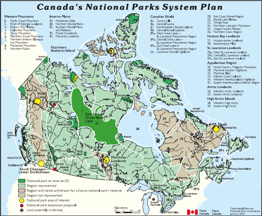 The Agency's actions to establish, protect and present Canada’s special heritage places are taken chiefly with regard to: the System of National Parks of Canada (Figure 5), the System of National Marine Conservation Areas of Canada (Figure 6), and the System of National Historic Sites (Figure 7).