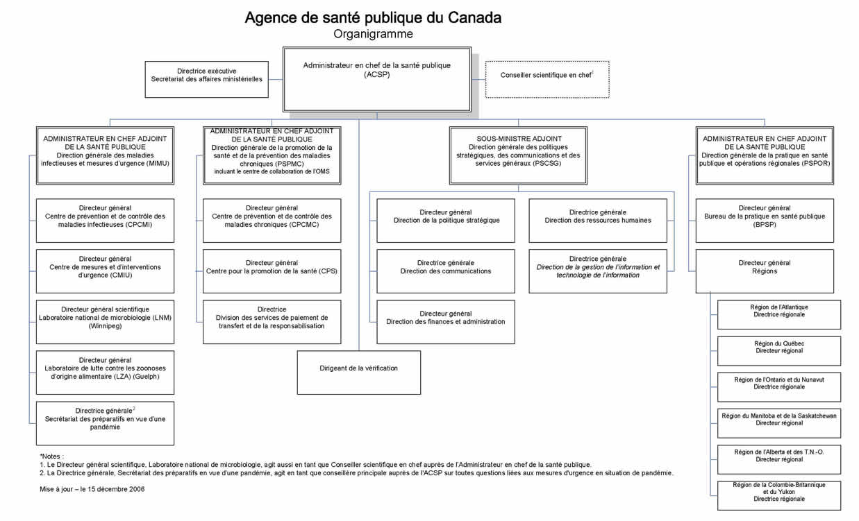 infectieuses, les maladies chroniques et les blessures, voir à la préparation et à la capacité d'intervention du Canada en cas de situations d'urgence en santé