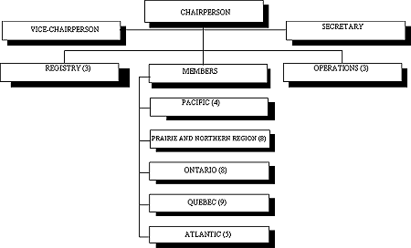 The Chairperson, Vice-Chairperson and immediate staff account for nine full-time equivalents. Thirty-four part-time members were in office during 2005-2006. Members are drawn from across Canada and are appointed by Order in Council on the basis of their knowledge and expertise. At the end of 2006, four part-time members were appointed in the aeronautics sector.