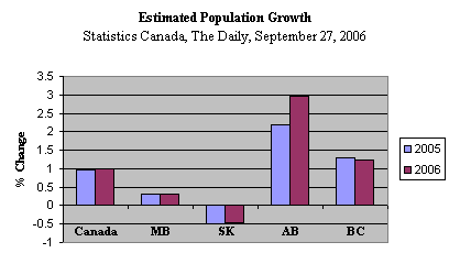 Since 2003, real Gross Domestic Product (GDP) growth in Saskatchewan, British Columbia and Alberta has met or exceeded the national growth rate, and the rate of real GDP growth in Manitoba has steadily increased. GDP growth in Alberta and British Columbia is forecast to continue to exceed the national average through 2007, with lower rates of growth in Saskatchewan and Manitoba.