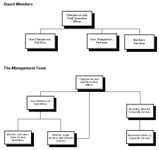 The Chairperson, the Vice-Chairperson and other Board Members are primarily supported in their work by the Director, Grievance Analysis and Operations.
