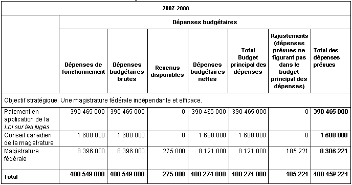 Résultat stratégique: Une magistrature fédérale indépendante et efficace. |