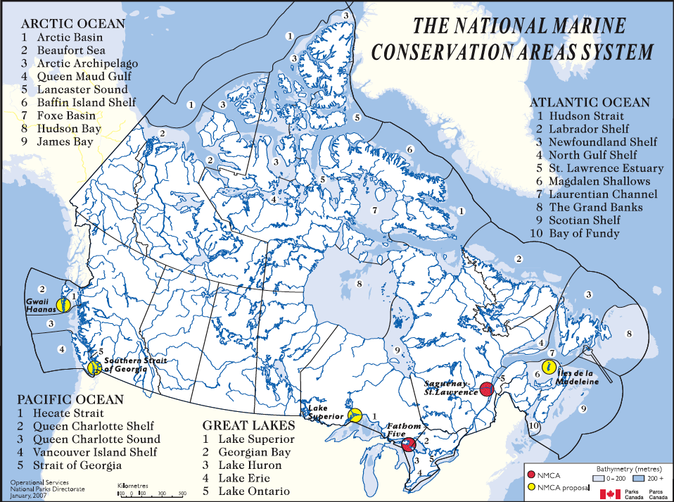 The Agency's actions to establish, protect and present Canada’s special heritage places are taken chiefly with regard to: the System of National Parks of Canada (Figure 5), the System of National Marine Conservation Areas of Canada (Figure 6), and the System of National Historic Sites (Figure 7).