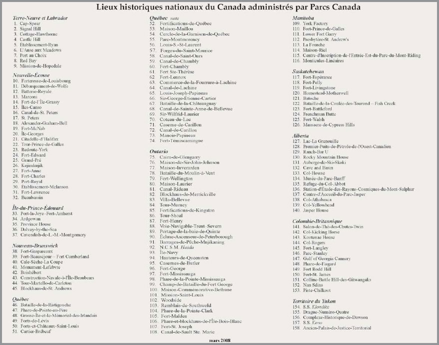 Figure 2 : Lieux historiques nationaux du Canada administrés par Parcs Canada (suite)