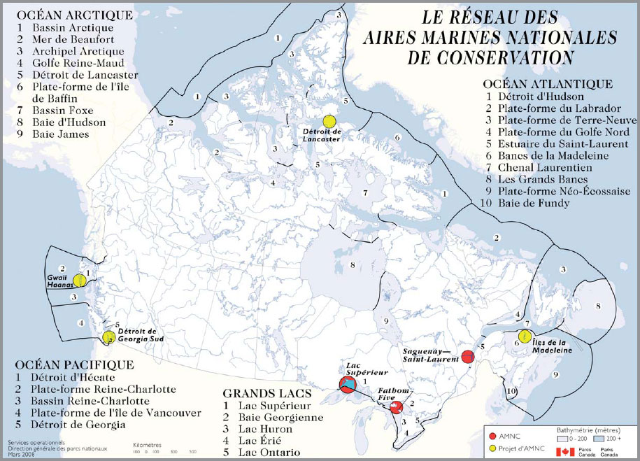 Figure 3 : Réseau des aires marines nationales de conservation du Canada