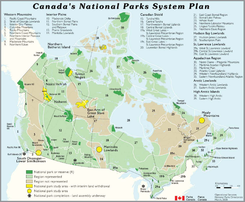 | Parks Canada’s long-term goal is to establish at least one national park and one national marine conservation area in each of Canada’s terrestrial and marine regions. The system of national parks, presented in figure 1, represents Canada’s terrestrial regions. As of March 31, 2008, there are 42 national parks