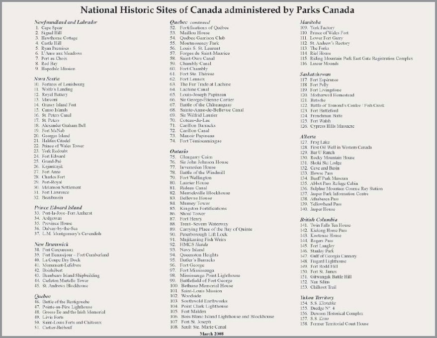 The following information can be found in the Library section of the Parks Canada website at http://www.pc.gc.ca.