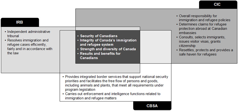 Portfolio management. As immigration portfolio partners, the IRB, CIC and the Canada Border Services Agency (CBSA) collaborate on operational matters while respecting each other's distinct mandates and the IRB's adjudicative independence. A recent trilateral Memorandum of Understanding clearly defines institutional relationships and reflects the current operational environment and priorities of the partners. This new collaborative approach creates opportunities to improve communication and operational coordination. The diagram below illustrates the immigration and refugee portfolio, partners and responsibilities.