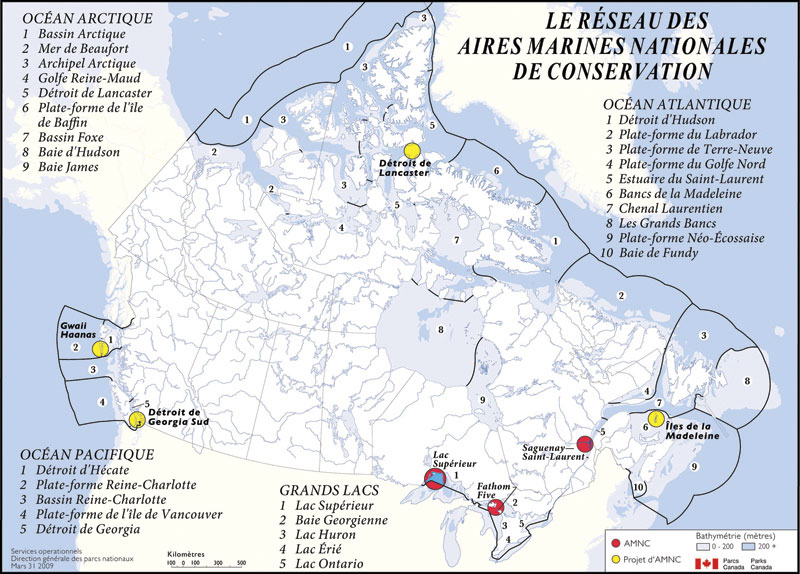 Figure 3 : Réseau des aires marines nationales de conservation du Canada