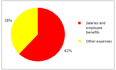 For fiscal year 2010-11, it is projected that total expenses will be $3.5 million. Most of these expenses are made up of salaries and employee benefits (62% or $2.2 million), and operating expenses (38% or $1.3 million). The majority of these latter expenses are required for the Board's policy role. The balance is made up of expenses associated with internal services. |