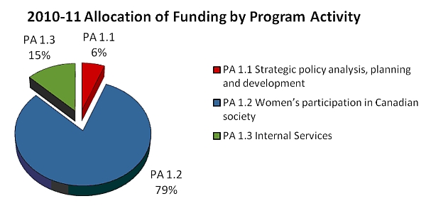 Most of SWC's funding is allocated to Program Activity 1.2: Women's participation in